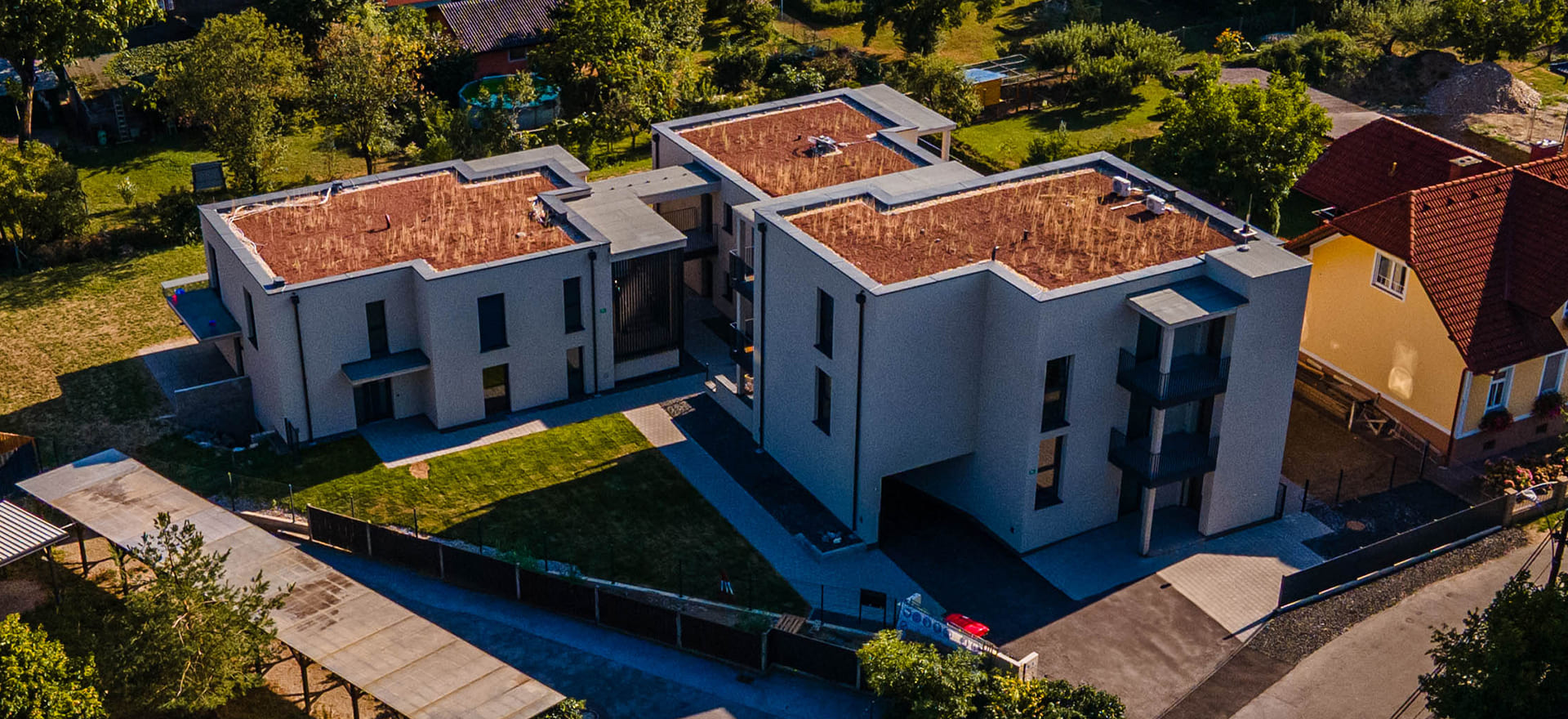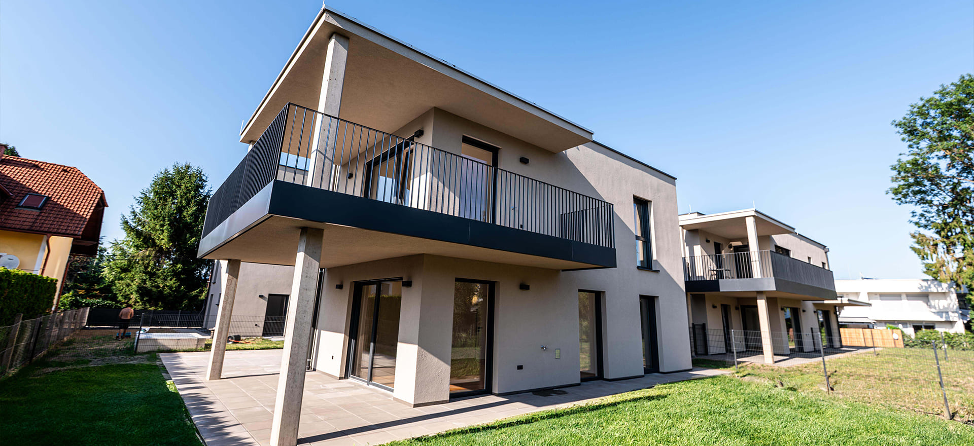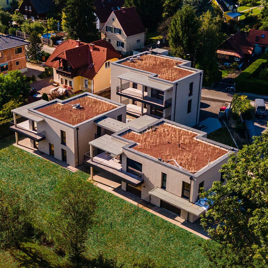 Die Gebäude sind bereits fertiggestellt und bieten mit modernem Design, hochwertigen Materialien und großzügigen Außenbereichen die perfekte Balance zwischen urbanem Wohnen und natürlicher Umgebung.
